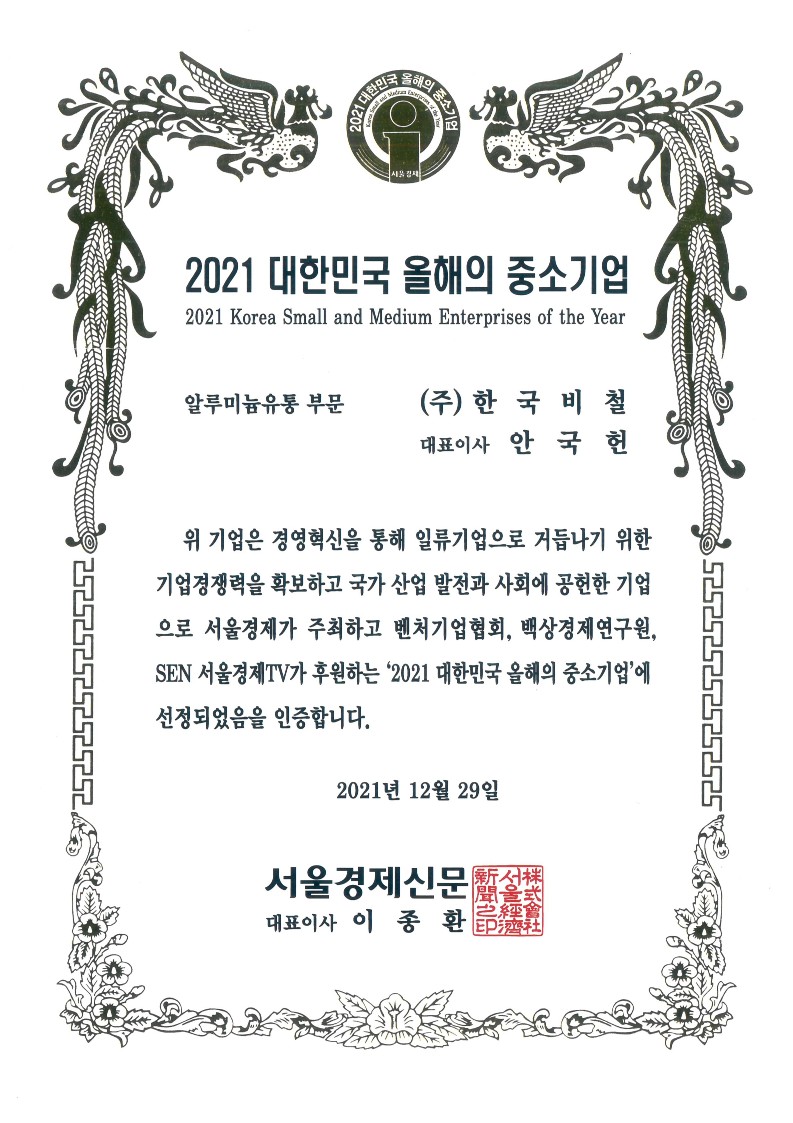 KNF award as 2021 Korea Small and Medium Enterprises of the Year